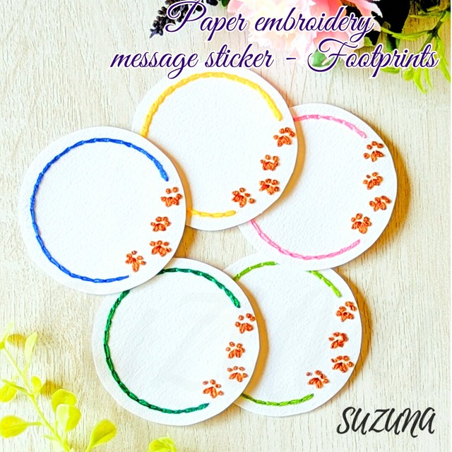 貼れる❀ 紙刺繍のメッセージシール「肉球」 5枚セット
