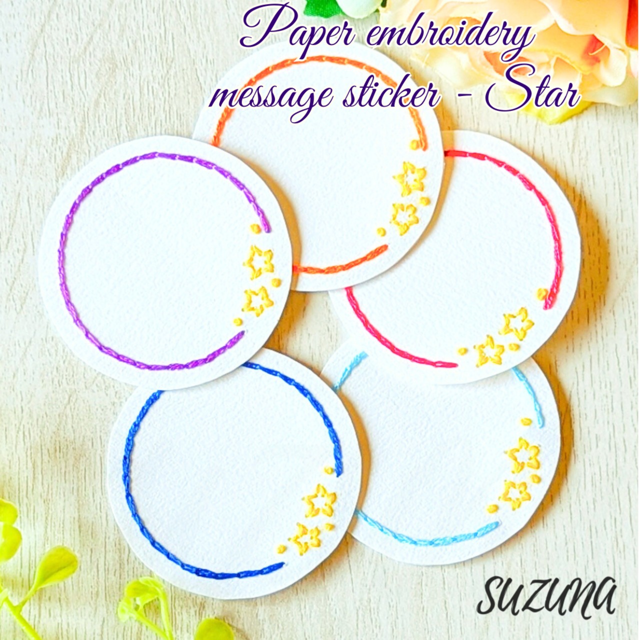 紙刺繍のメッセージシール「花」