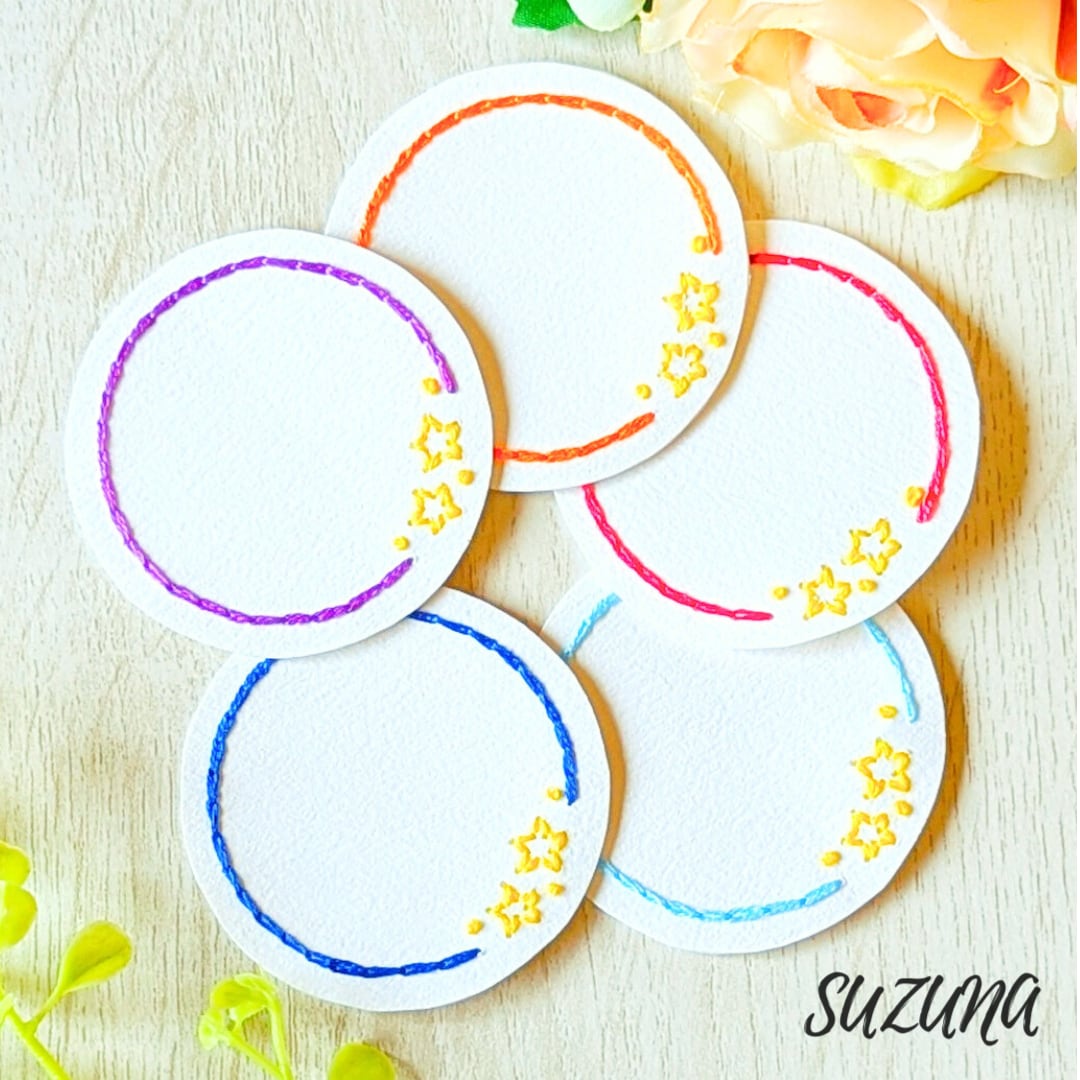 貼れる❀ 紙刺繍のメッセージシール「星」 5枚セット
