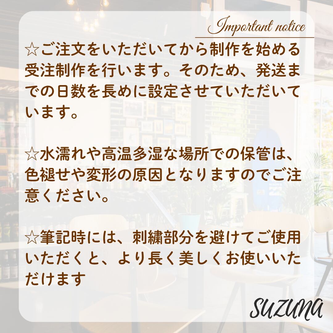 ・筆記時には、刺繍部分を避けてご使用いただくと、より長く美しくお使いいただけます。