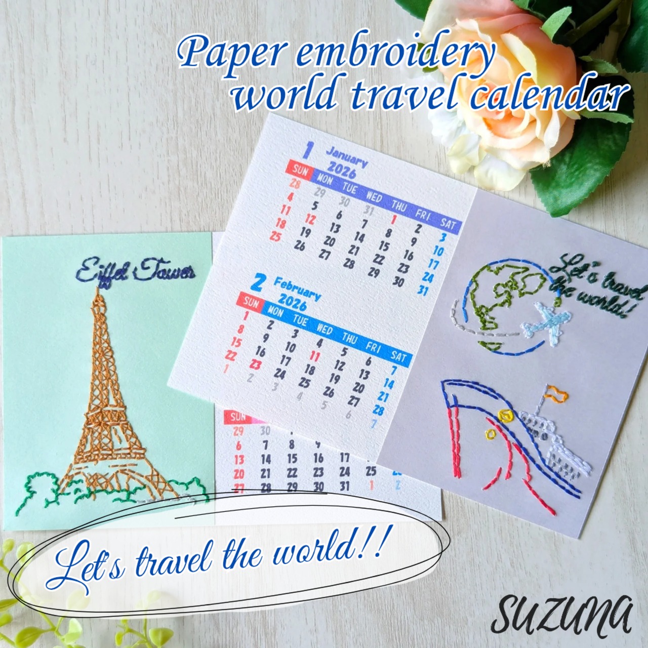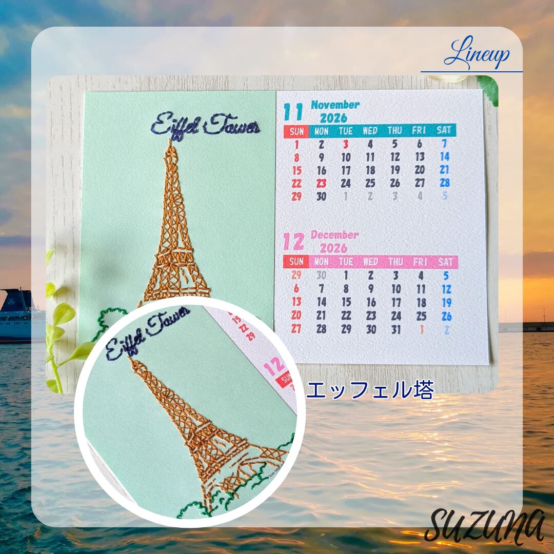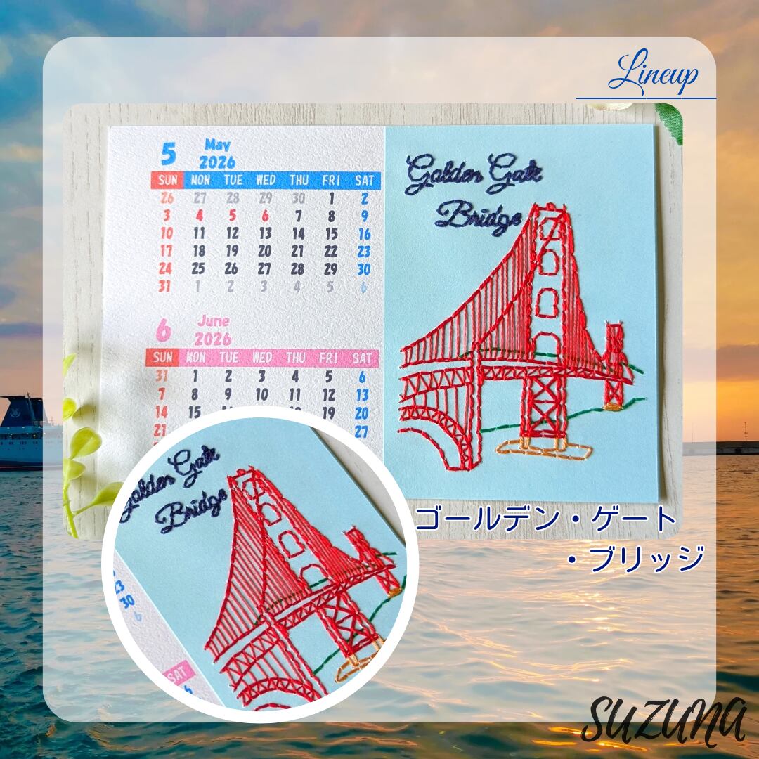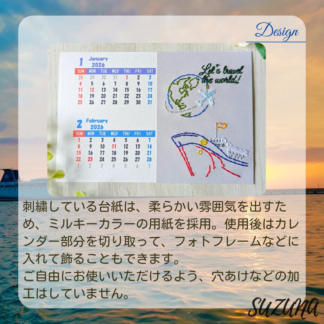 ハンドメイド 手作り 紙刺繍 刺繍 手芸 ペーパークラフト カレンダー 卓上 観光地 カラフル 自然 植物 建物 建造物 Let's travel the world! Great Wall of China Golden Gate Bridge Big Ben Savanna Eiffel Tower 地球 船 飛行機 雲 山 夕焼け 夕日