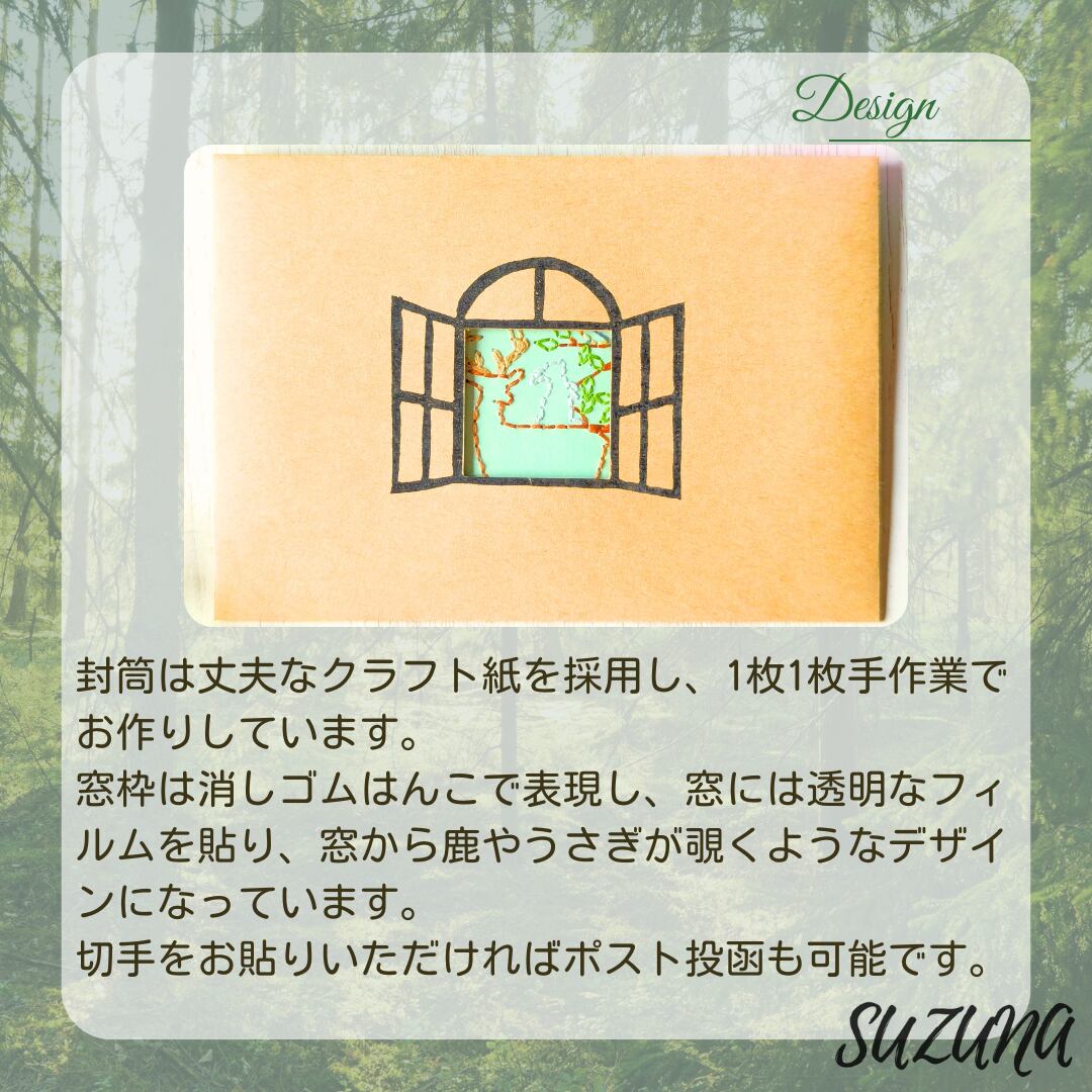 ポストカードを入れると、窓から鹿やうさぎが覗くようなデザインになっています。
