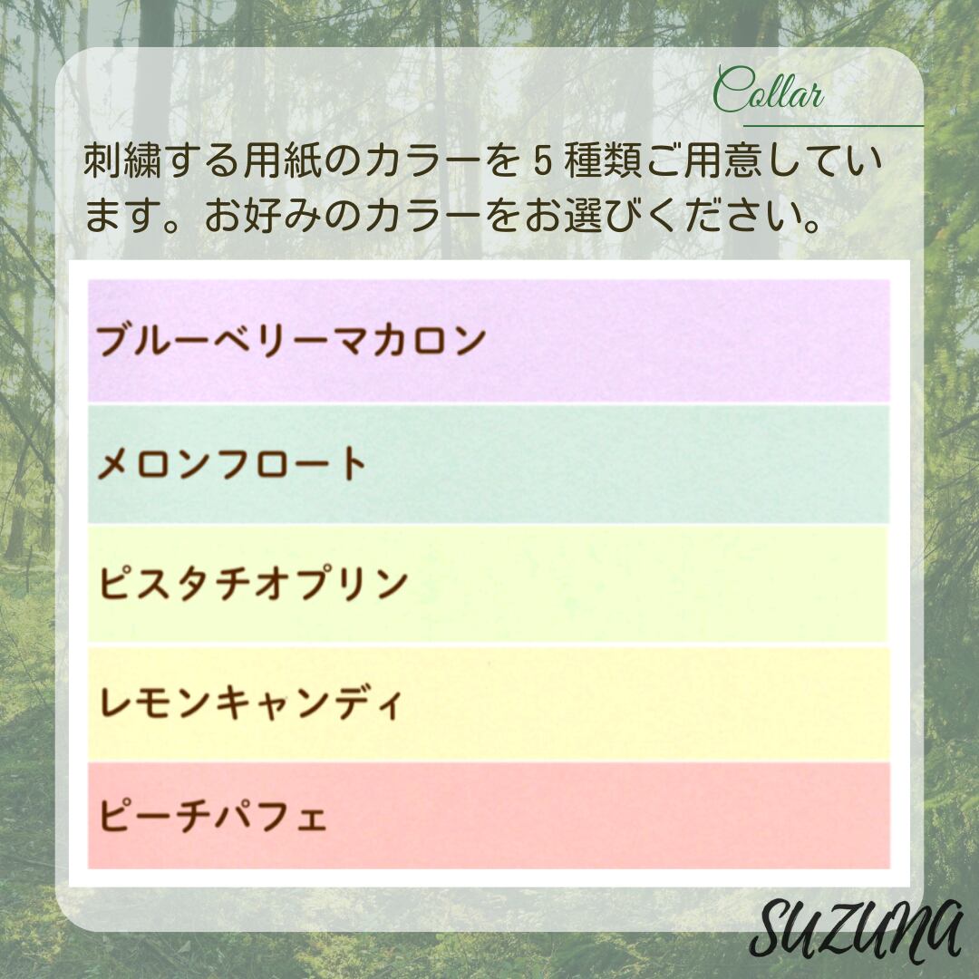 刺繍する用紙のカラーは5種類ご用意しています(11枚目の画像をご参照ください)。